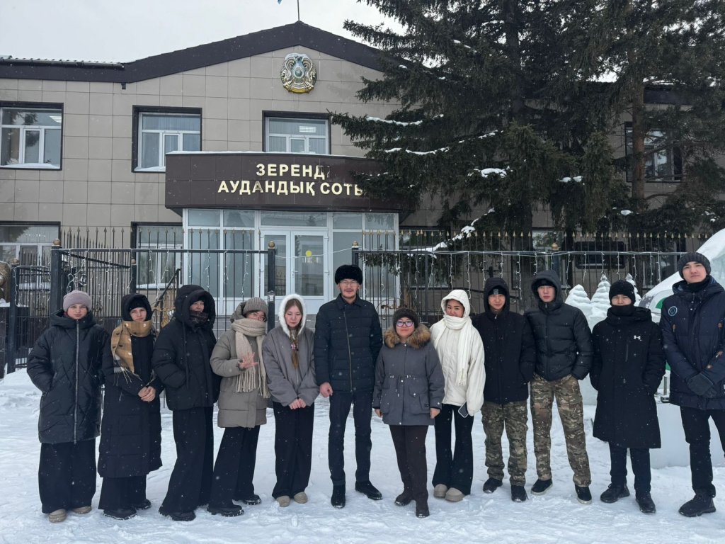 «Заң мен тәртіп» айлығы аясында және «Адал азамат» бірыңғай бағдарламасын іске асыру мақсатында 10-сынып оқушылары сот процесіне қатысты.
